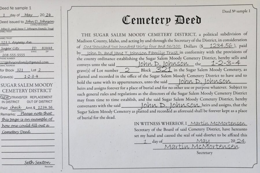 We need your help in verifying plot deeds. If you own a deed in the Sugar Salem Moody Cemetery please send us a copy of your deed by clicking the link below and filling out the form on the next page.
